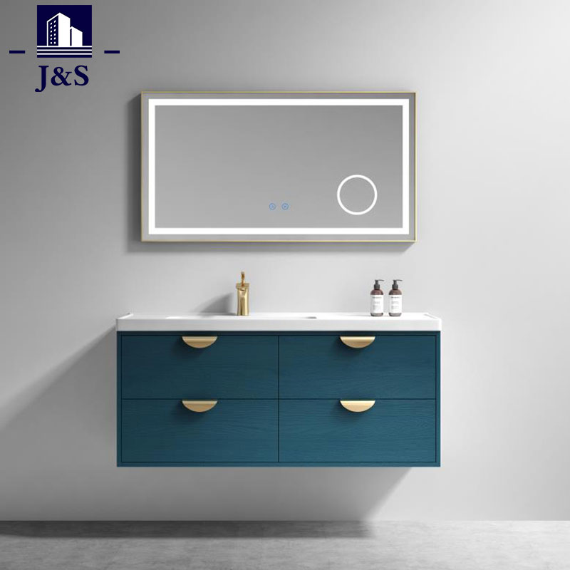 We Supply a Affordable Bathroom Vanities Cabinet.The anyar desain gaya transisi murni sing ndadekke imbangan lan harmoni kanggo sembarang space.Navy biru werna ,golden gagang,Smart LED cahya mirror.Affordable Kamar Mandi Vanities Kabinet iku lemari jedhing sing banget populer karo wong saiki.