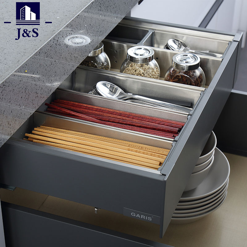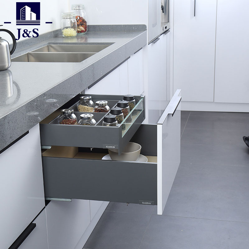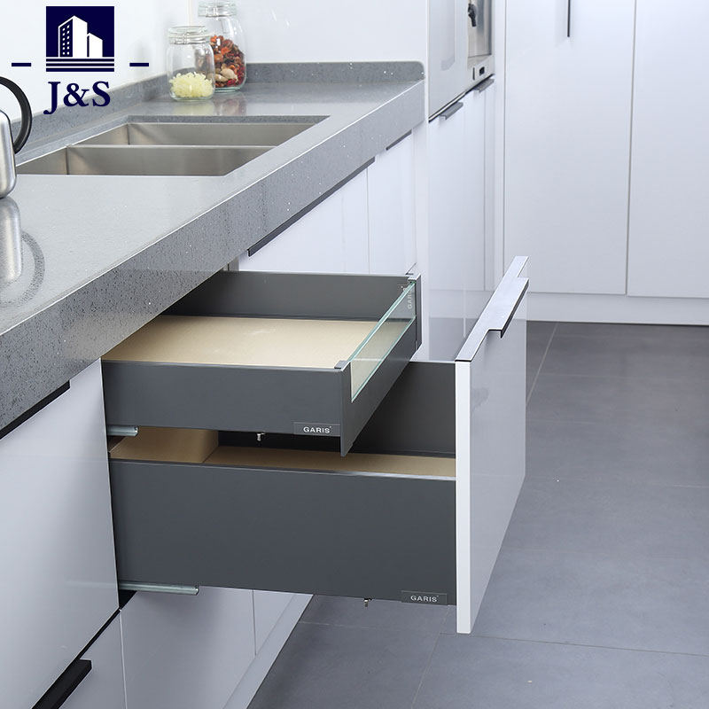 Kothak tandem Extension Lengkap Slim Soft Close Slider yaiku piring sisih baja telung lapisan kanthi damping sing dibangun, uga dikenal minangka pompa damping mewah. Iku aksesoris hardware paling apik digunakake ing pawon kabèh, lemari klambi, laci, etc.. iku luwih ngalangi lan awet saka telung bagean guide alur.